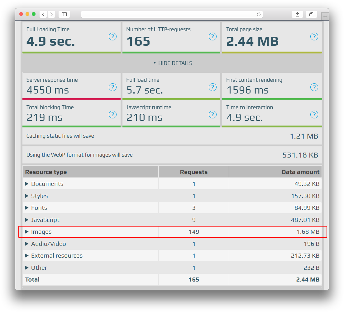 This optimization method is especially useful for sites with a large number of images, such as online stores, pages with a large number of images, photo galleries or portfolios.