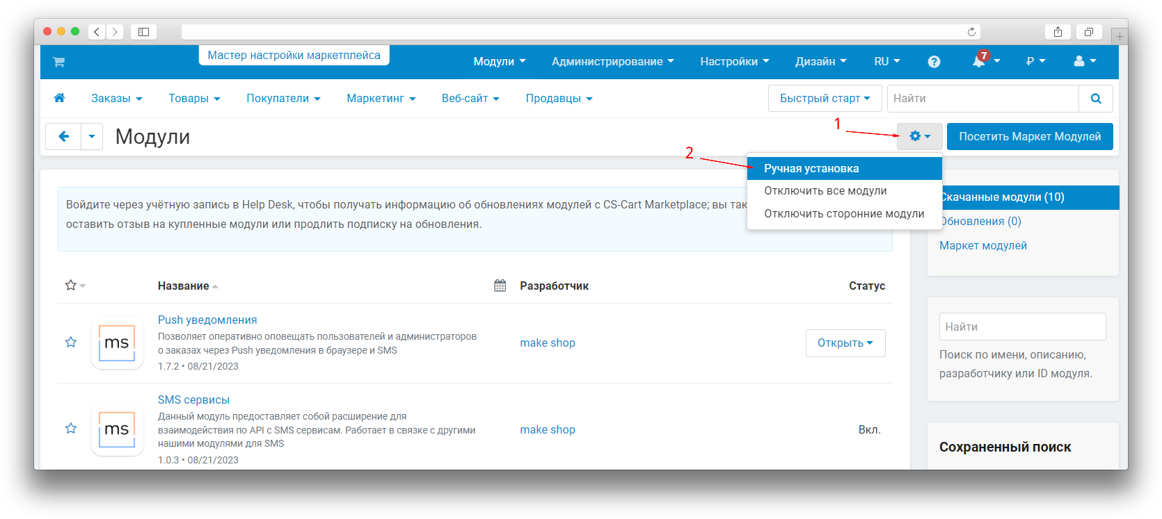 При покупке на маркетплейсе CS-Cart