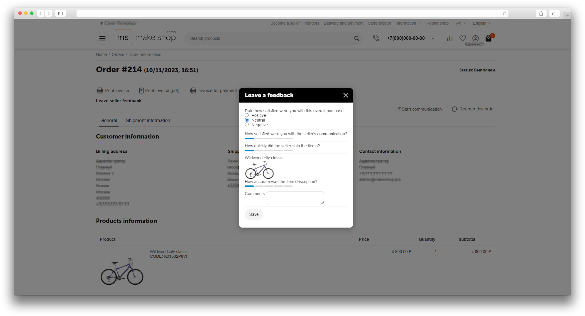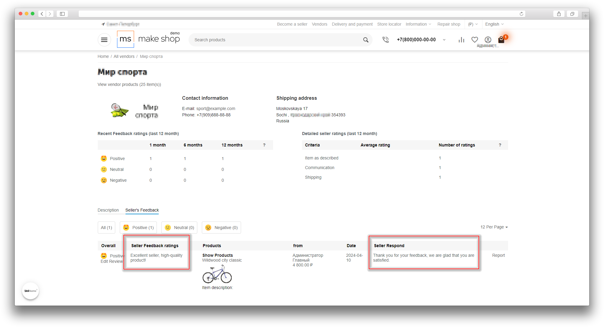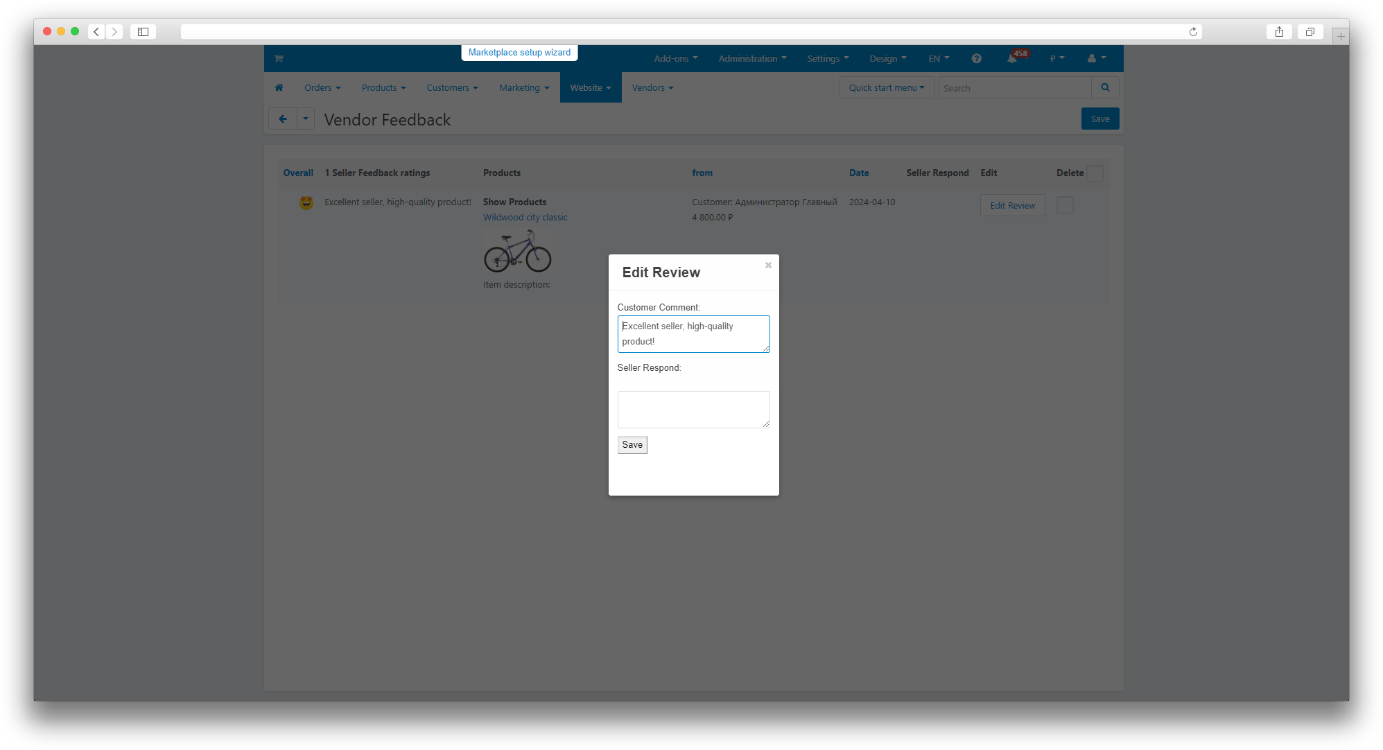 The feedback add-on for CS-Cart from make shop is a simple but effective solution that turns your marketplace into a space for open and productive communication between customers, sellers and administrators. No more difficulties with choosing a seller or evaluating the quality of service! Thanks to our add-on, customers can easily leave feedback and evaluate the seller's work, and sellers and administrators can quickly respond to them. This creates an atmosphere of transparency and trust, making the buying and selling process comfortable and enjoyable for all parties. Reviews and dialogues help to make informed decisions, strengthen the store's reputation and increase customer satisfaction. Our feedback add-on is the key to a successful business and satisfied customers!