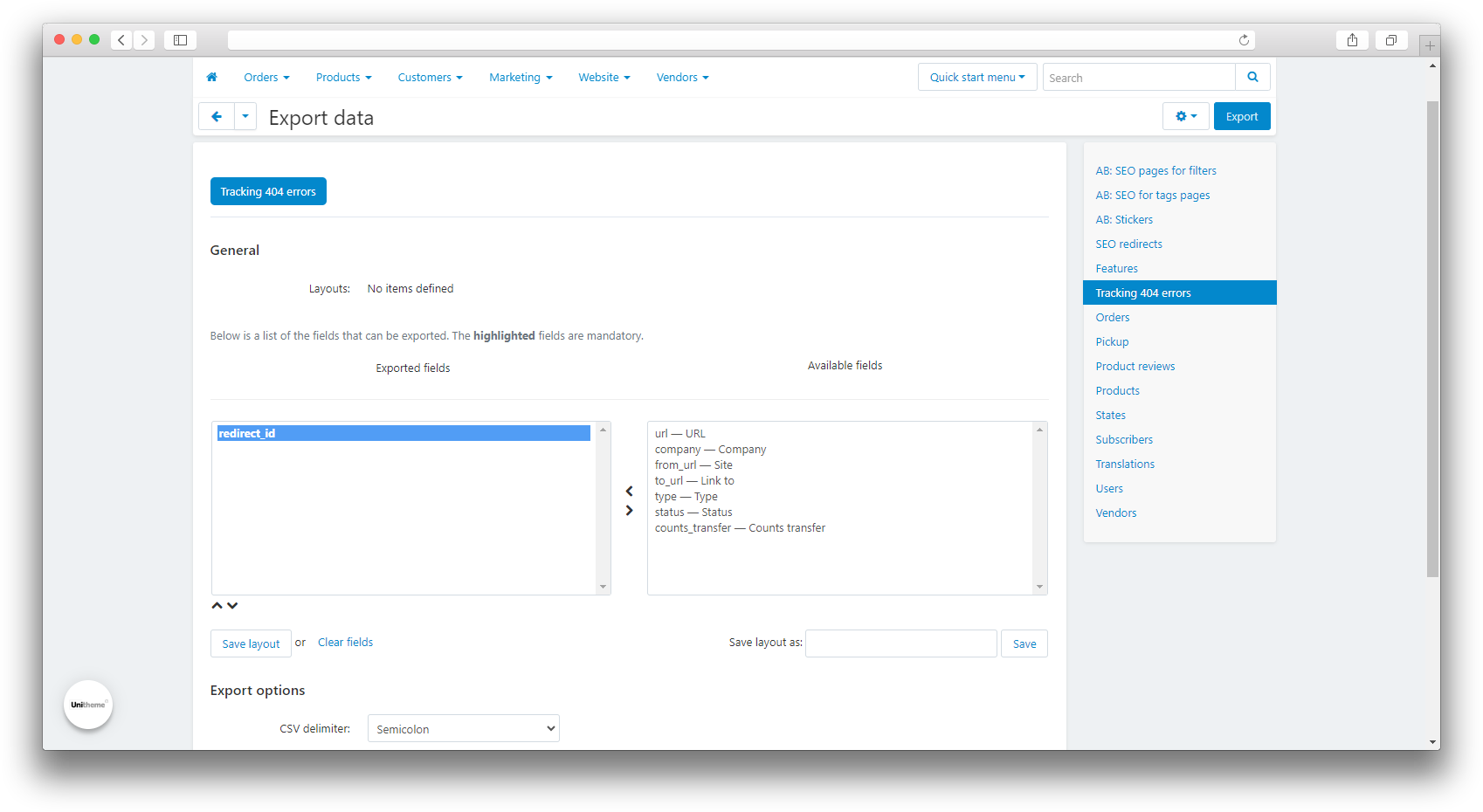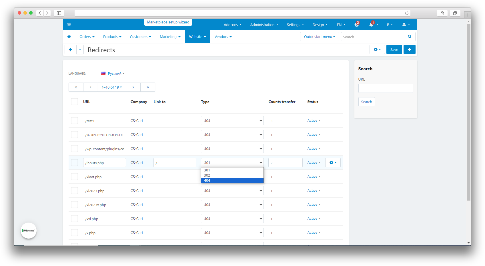 The add-on allows tracking transitions to pages with a 404 response code, which is a useful tool in the arsenal of your SEO specialist. We constantly use it in our studio when transferring a site to CMS CS-Cart from another CMS, as the structure of the resource changes and despite the compiled map of redirects, individual errors may arise.