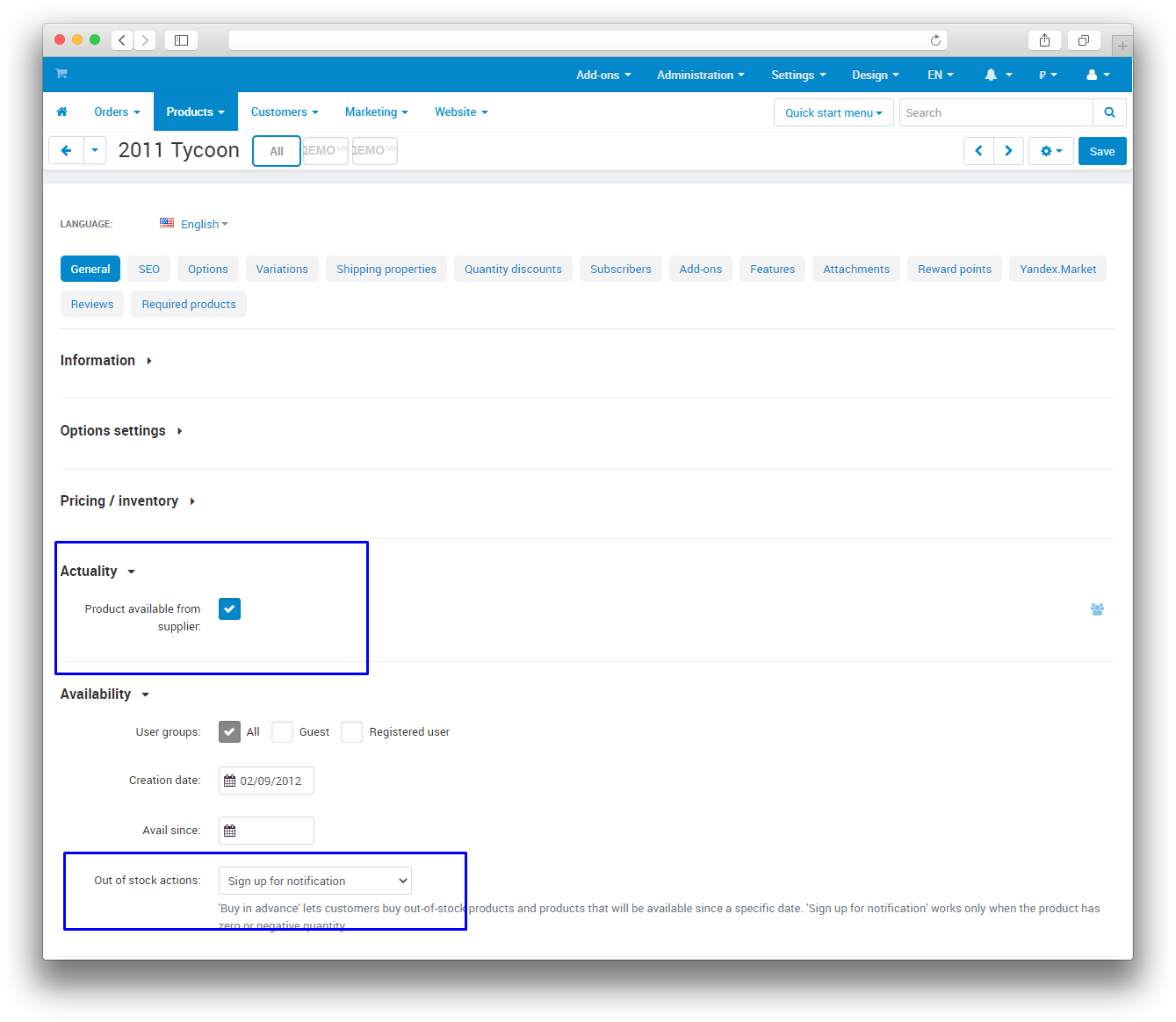 CS-Cart provides for the sale of goods with a negative balance. But you probably faced the problem that not every product is from the supplier, and you need to sell the rest of the product. Our add-on adds a parameter to each product indicating that the item is up-to-date and can be ordered from the supplier.