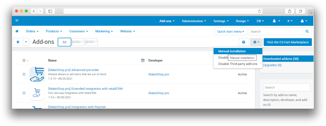При покупке на маркетплейсе CS-Cart