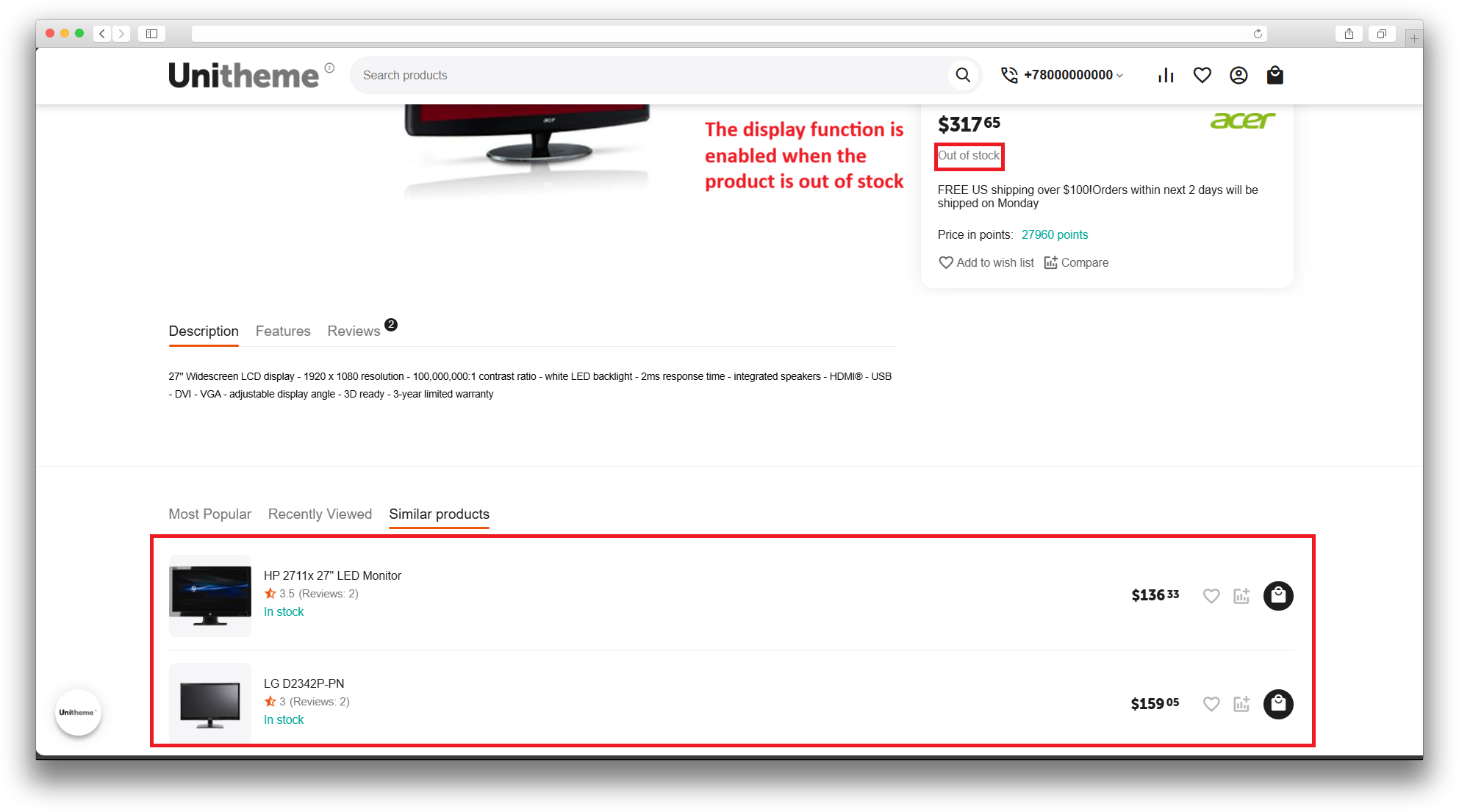 ⚠️ If the «Display only when product is unavailable» checkbox is checked, this feature will not be visible if the product is in stock.