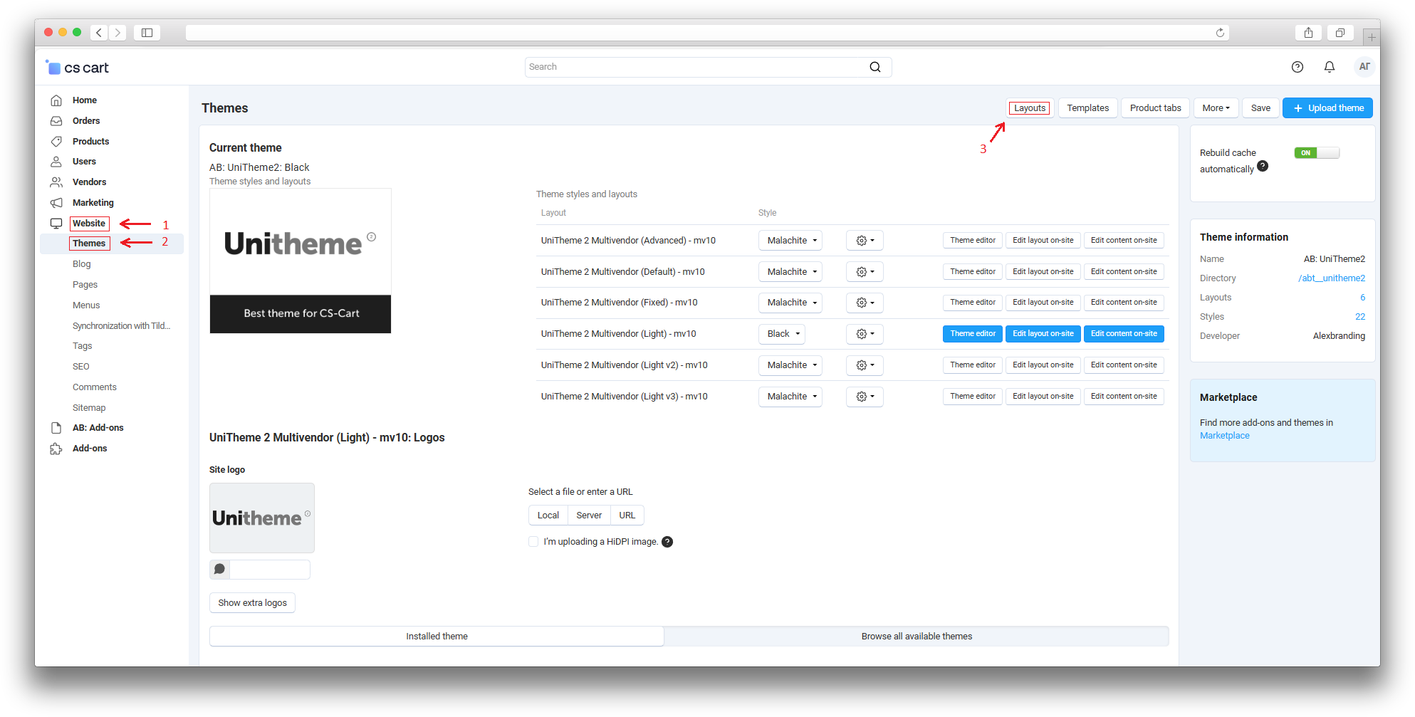 After installing the addon, go to layout settings Website - Layouts - Products (CS-Cart version below 4.18) or Website - Themes - Layouts - Products (CS-Cart version 4.18 and above).