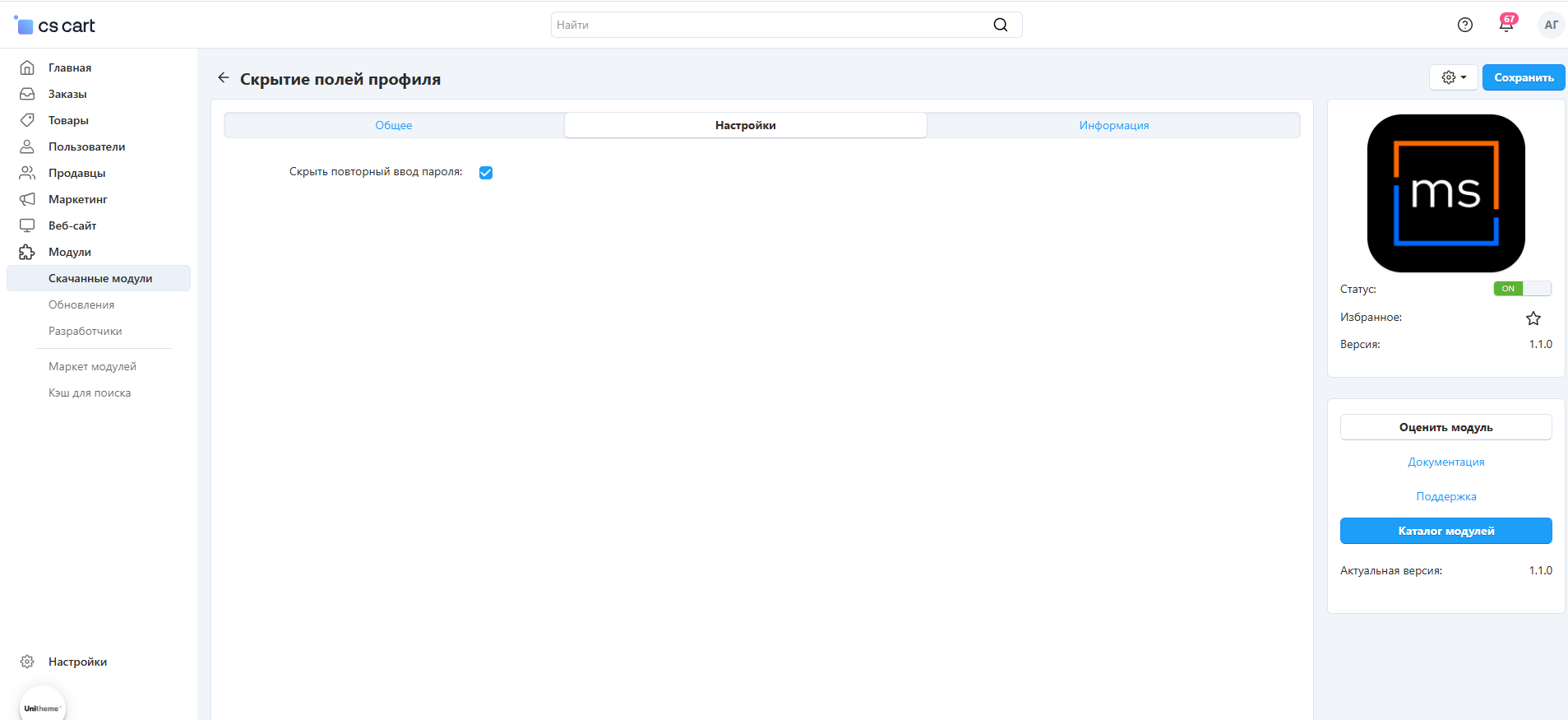 v1.1.0 from 01.02.2024 [+] Ability to hide fields on the field-editing page [+] Hide password re-entry, now available as a setting