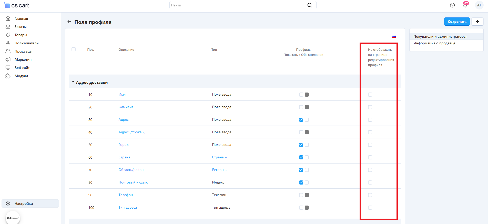 Result: The selected fields will not be displayed to users on the profile editing page, but they will remain available in the admin panel.