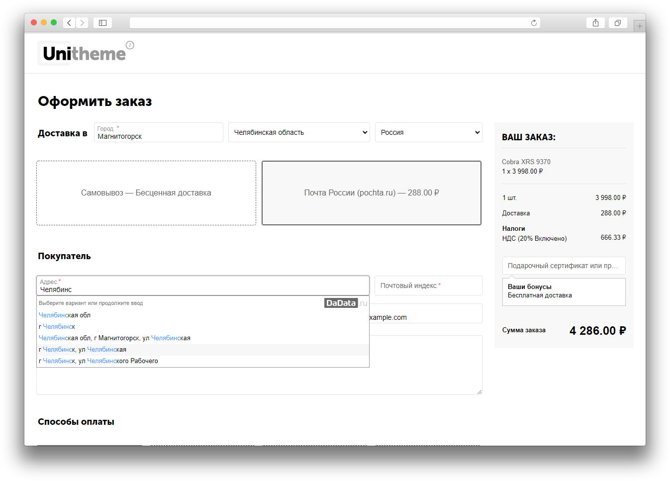 DaData.ru add-on for fast address input