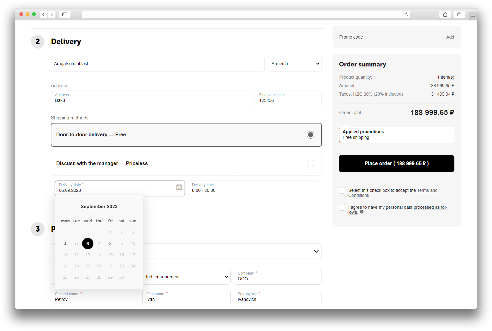 The add-on is designed to improve the delivery process for customers. It adds a schedule of available delivery methods and allows customers to choose a convenient date to receive their order when making a purchase.