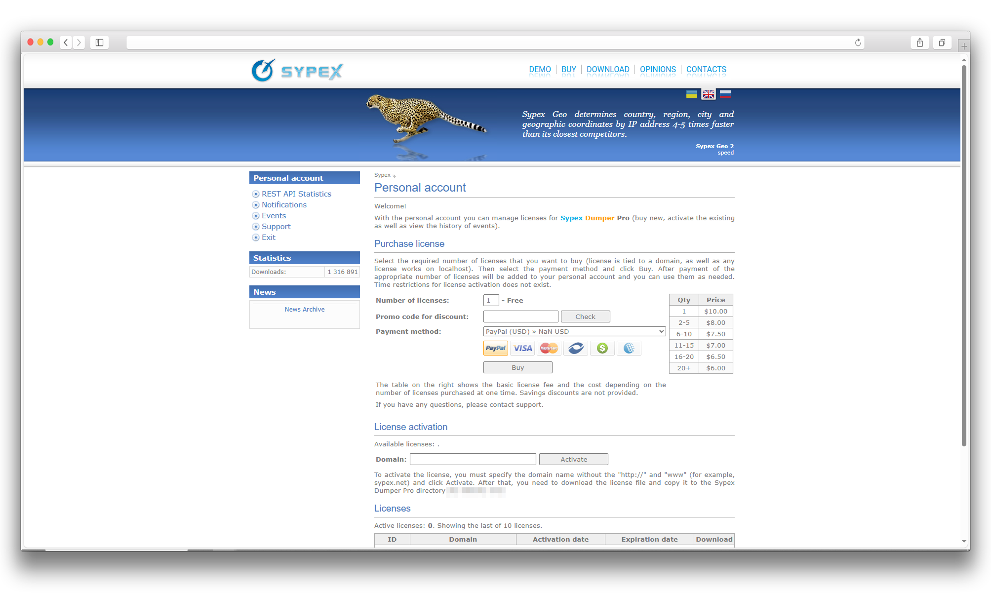 After registration, you will receive 30,000 free requests that are updated monthly. If necessary, you can purchase additional requests. 3. In your personal account, you will receive an API key. Here you can also track the remaining requests and purchase additional ones.