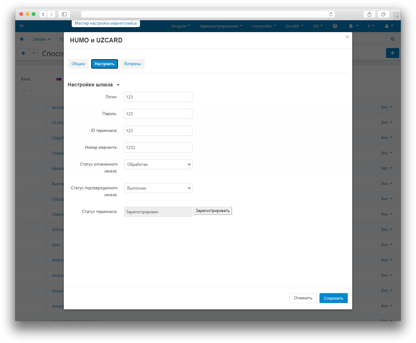 Next, you need to select the statuses of the paid and confirmed order. After that, click on the Register button. If the registration is successful, the terminal status should change to Registered.