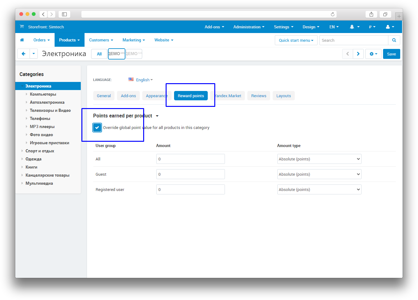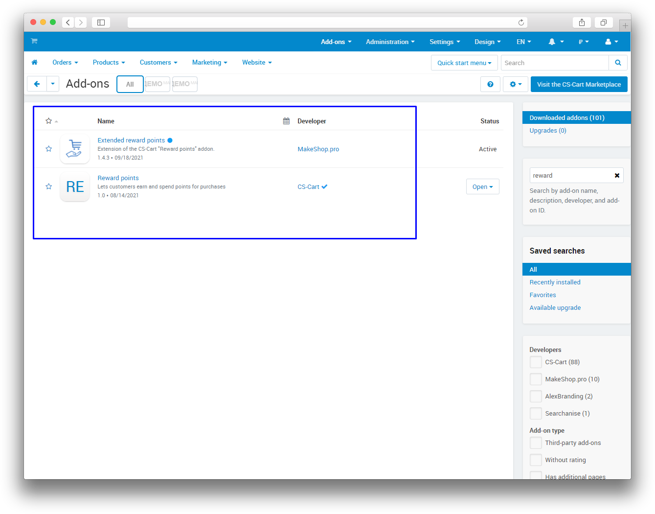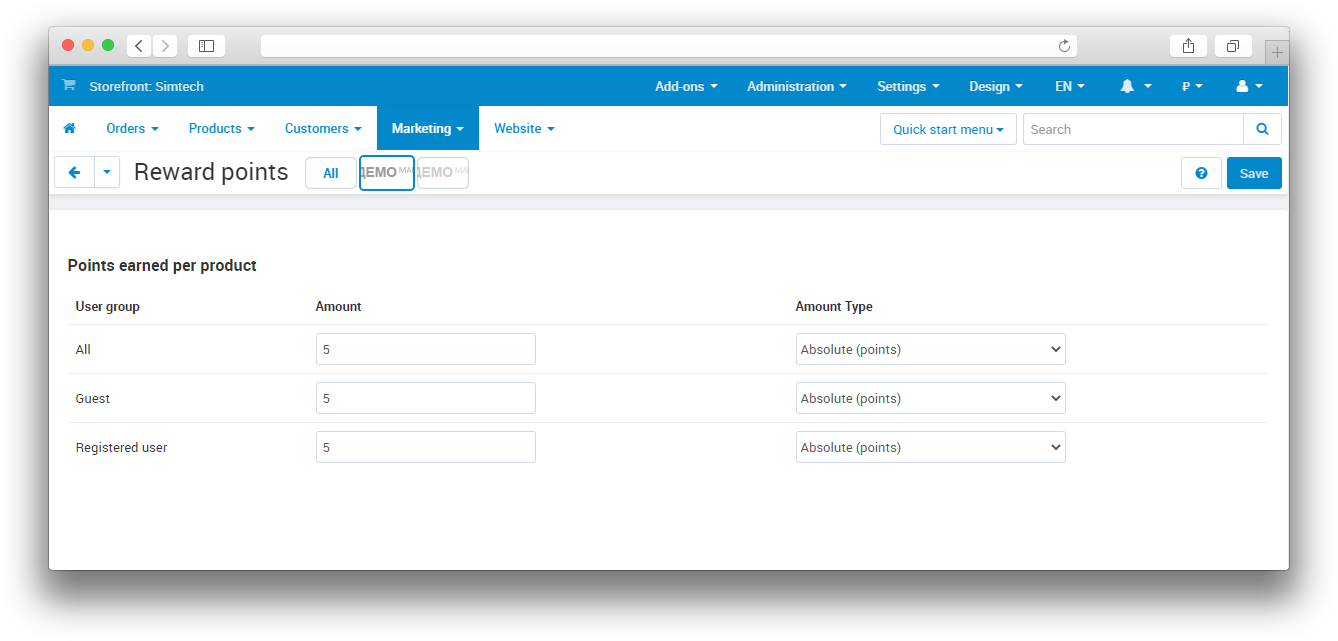 A loyalty program is an important tool for attracting and retaining customers for an online store. To organize a loyalty program, CS-Cart has a standard "Reward points" add-on. It allows you to launch a bonus program for the store that works on points. Upon purchase, the buyer receives points with which he can subsequently pay for the goods.
