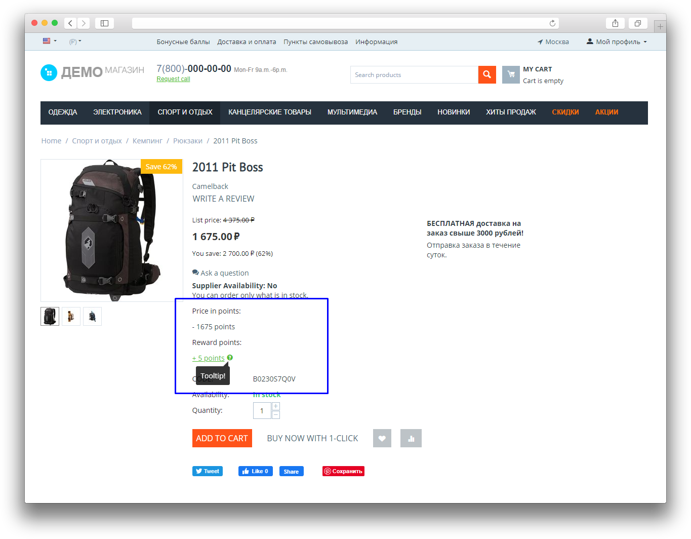 - Customizable information display (number of bonuses, link to the loyalty program, tooltip) in the product card.