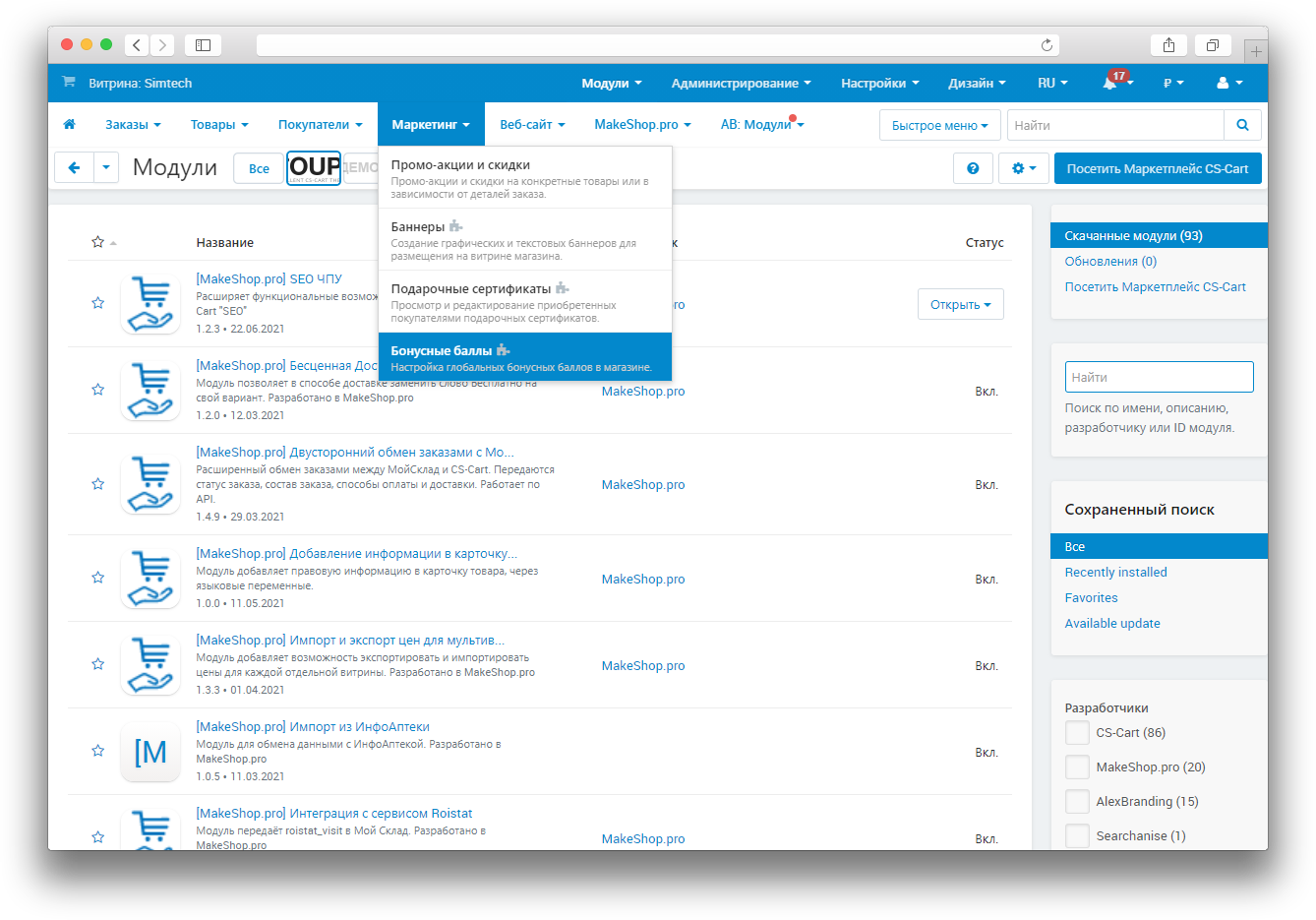 При покупке на маркетплейсе CS-Cart
