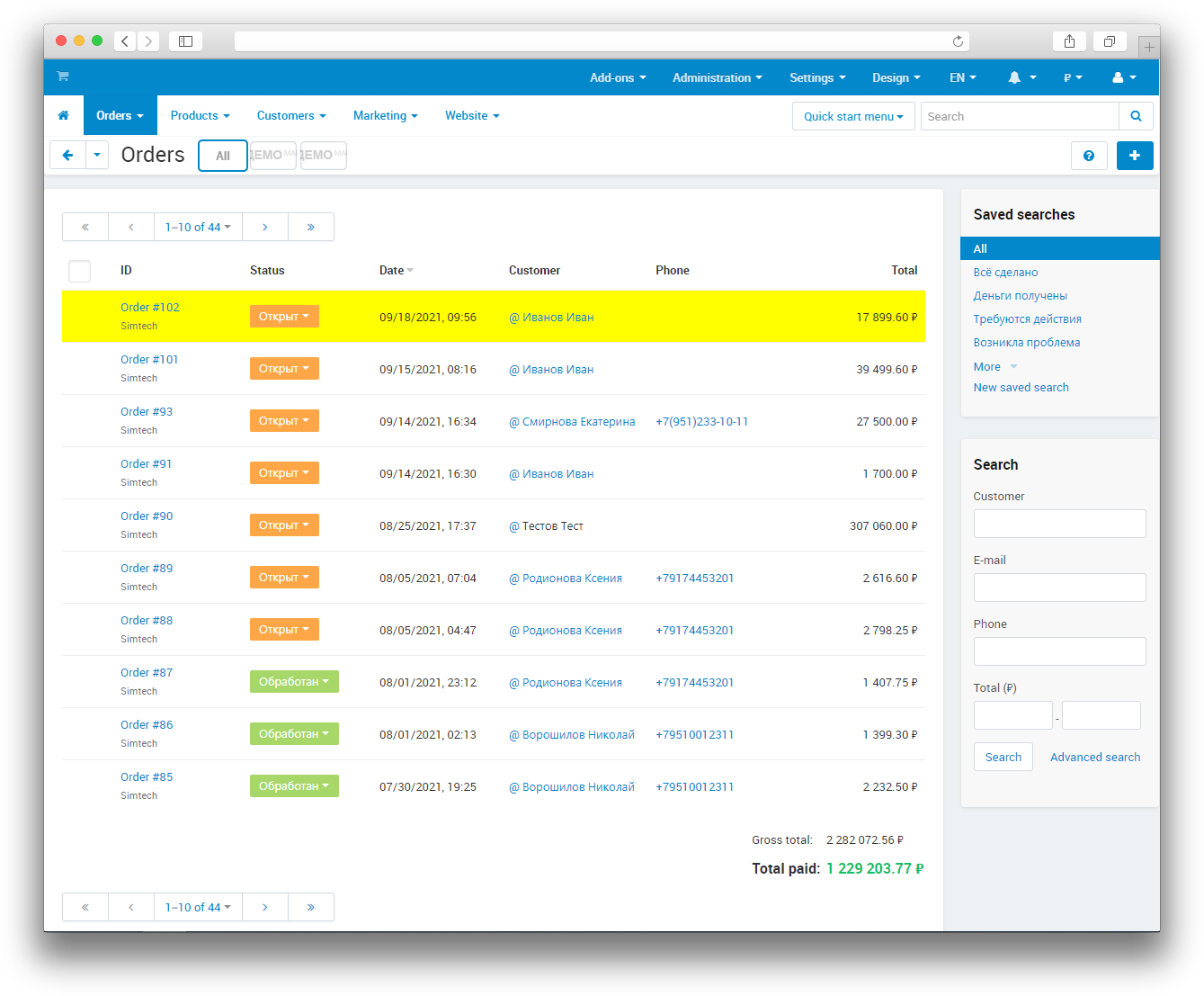 The addon is designed to automatically update the list of orders at a specified interval. New orders after appearing in the list are highlighted in color (selected in the settings) for some time, which can be changed. It is also possible to configure a sound notification (you will need to additionally change the browser settings to work). The list is updated without reloading the page, in real time, data on new orders are loaded using AJAX.