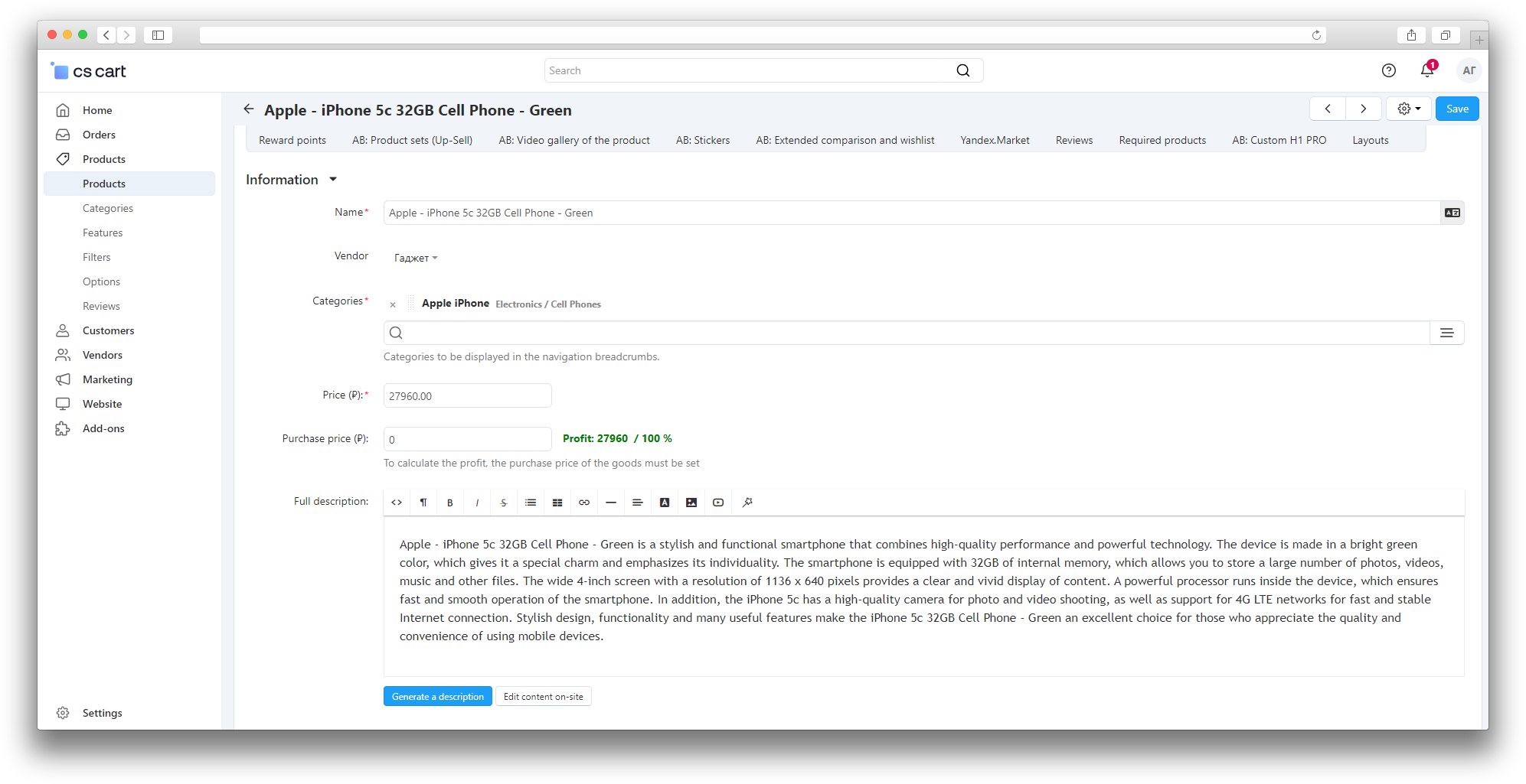 При покупке на маркетплейсе CS-Cart