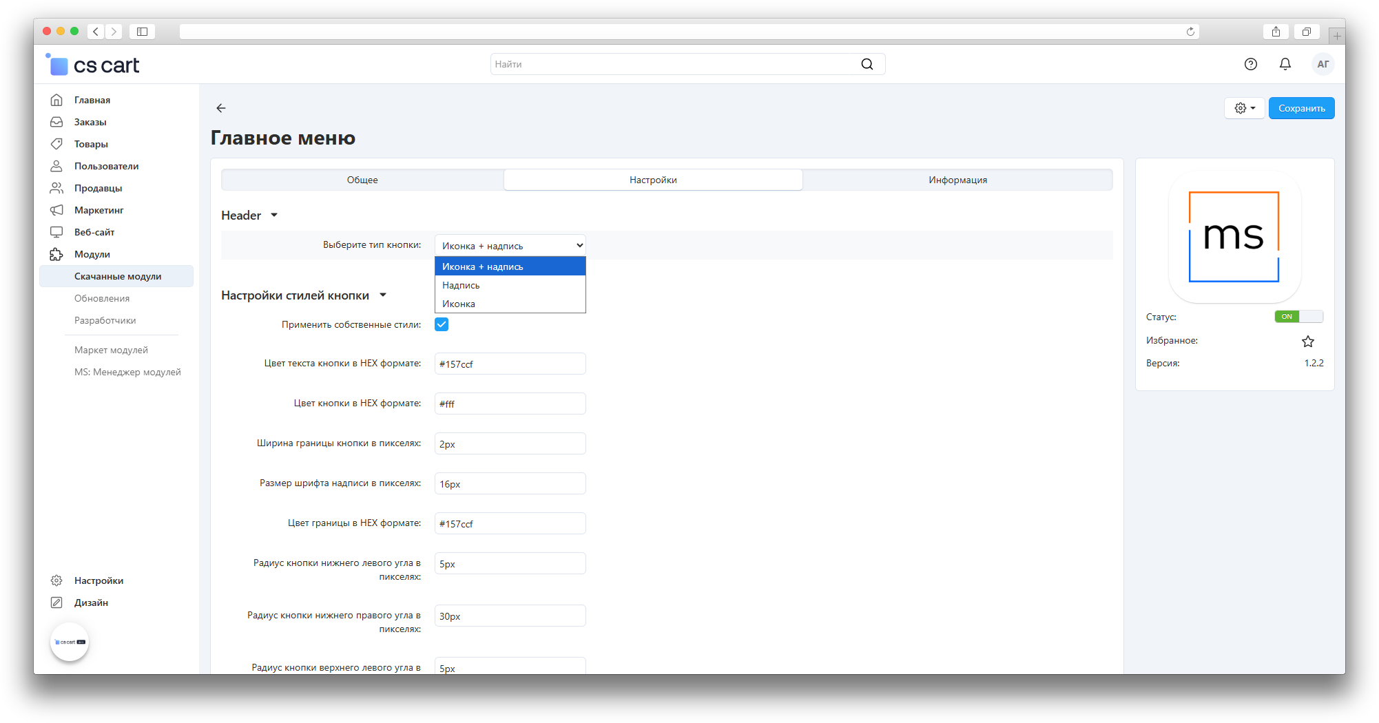 v1.2.0 (15.06.2022) [+] Added the ability to choose button styles: preset styles or custom-configured styles.