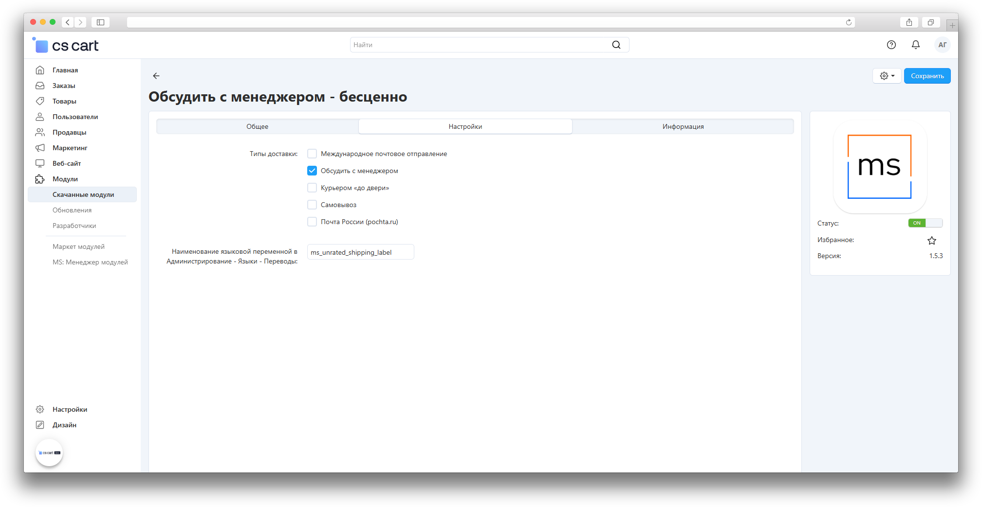 Если URL сайта неправильный и вам нужно обновить его: переходите в пункт меню “Мои модули”