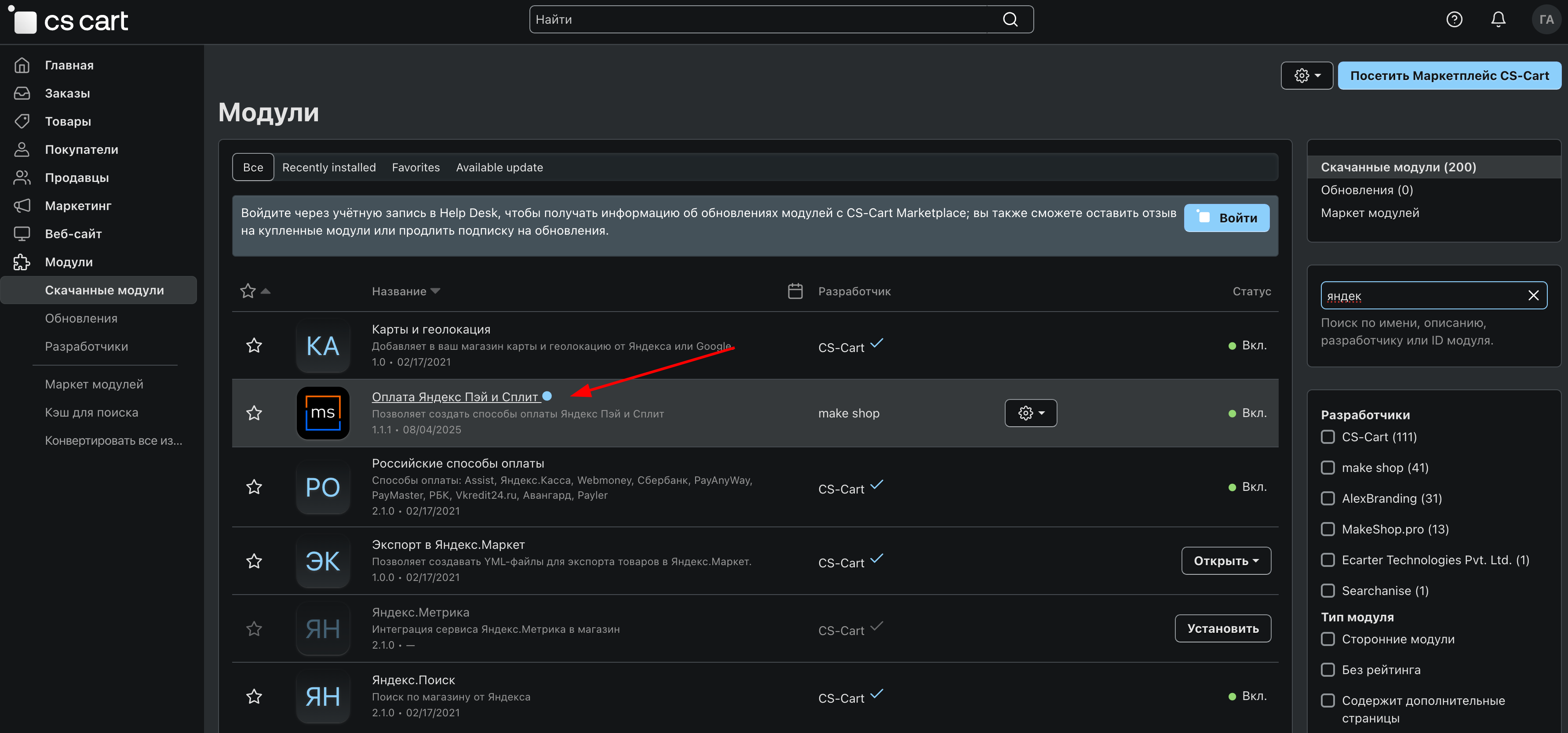 При покупке на маркетплейсе CS-Cart