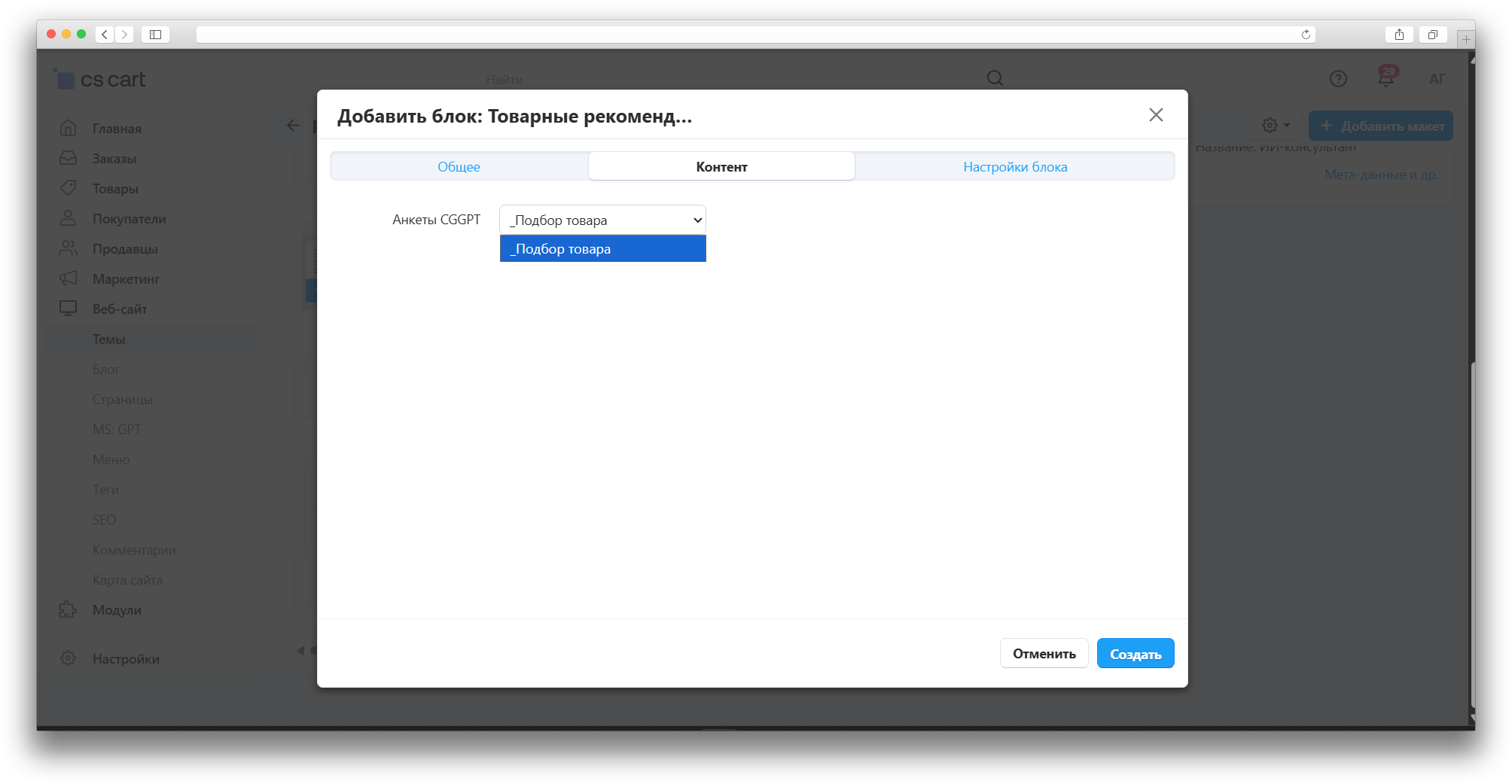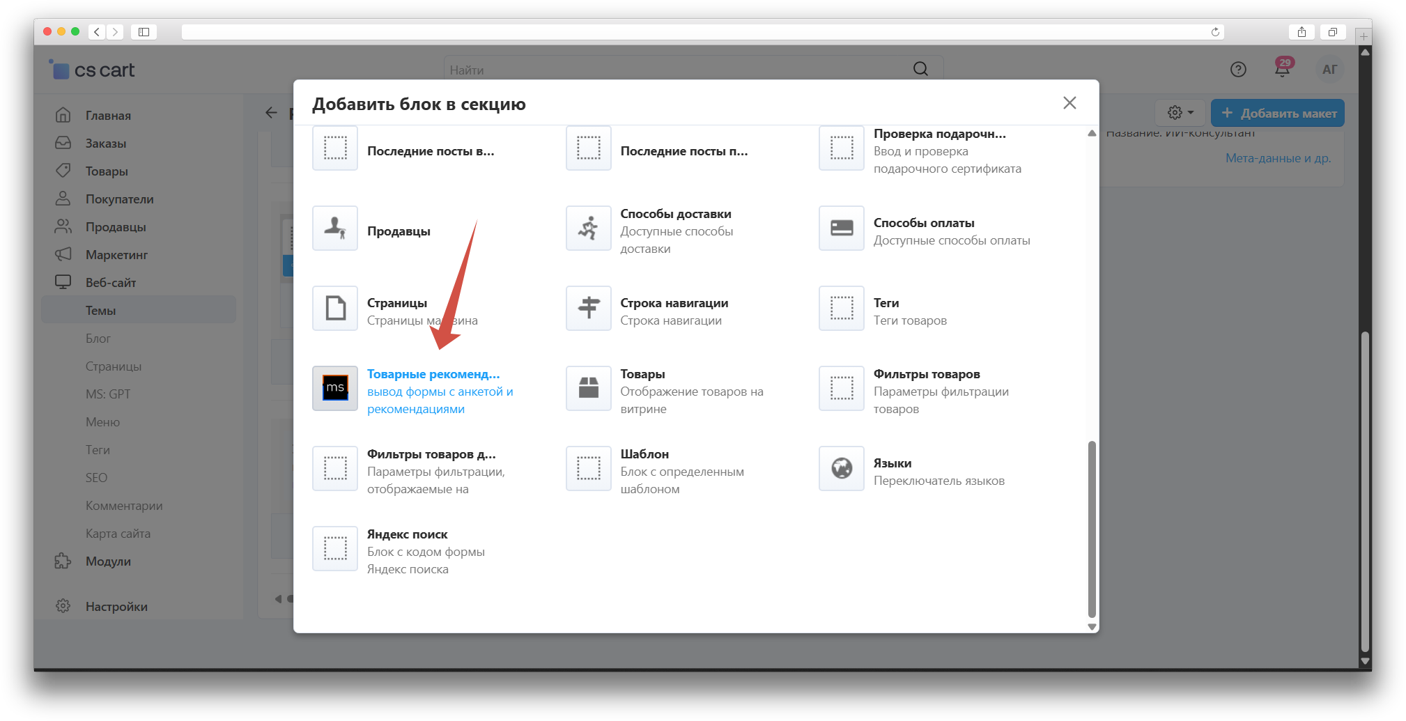 Перейдите в Макеты, добавьте блок Товарные рекомендации: