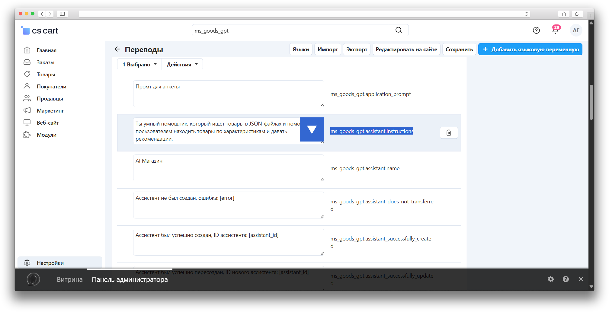 В переменной ms_goods_gpt.assistant.instructions