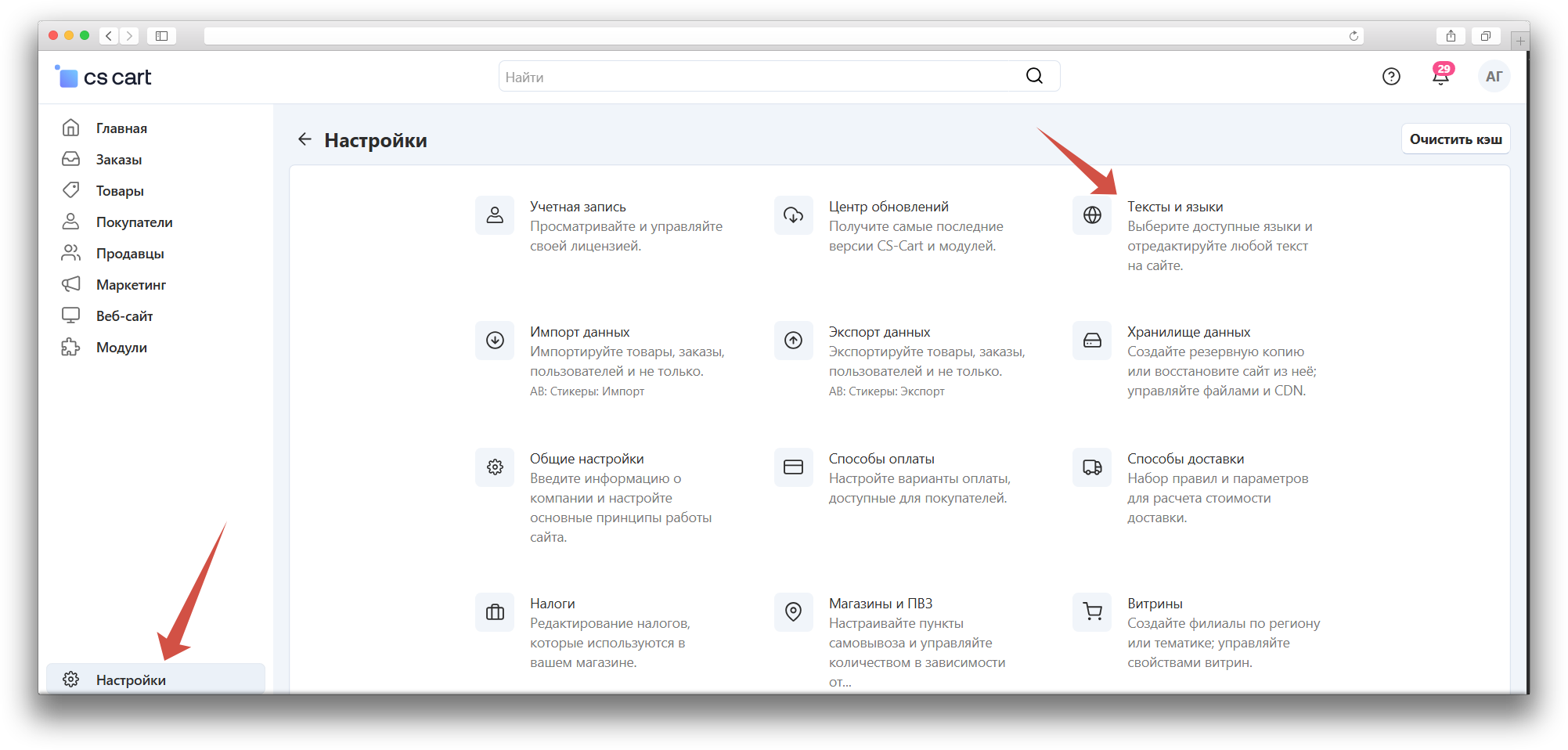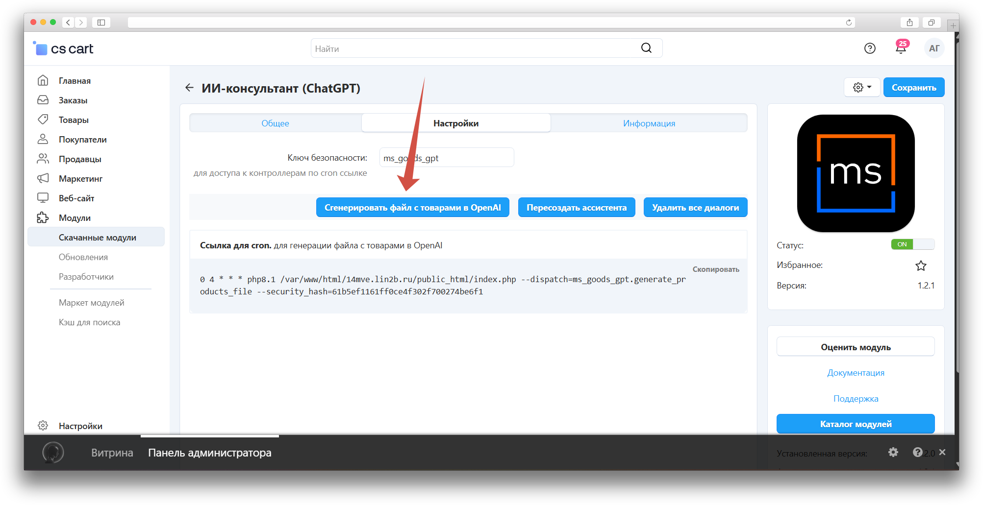 - Перейдите в Настройки модуля.