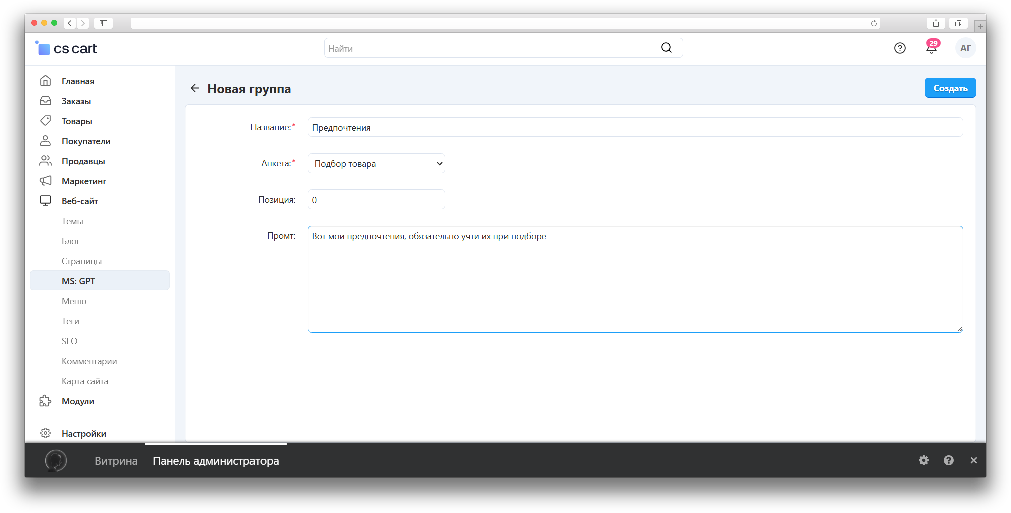 можно изменить инстукцию для GPT. Чтобы она вступила в силу, надо нажать кнопку «Пересоздать ассистента» в настройках модуля.