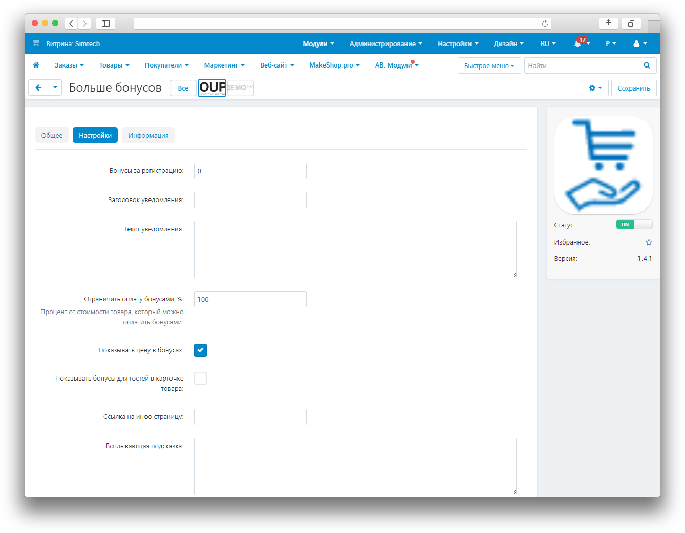 ВАЖНО: Данный модуль распространяется по подписке. Оформляя подписку вы получаете доступ ко всем модулям make shop. Обратите внимание: модули будут работать только при активной подписке!