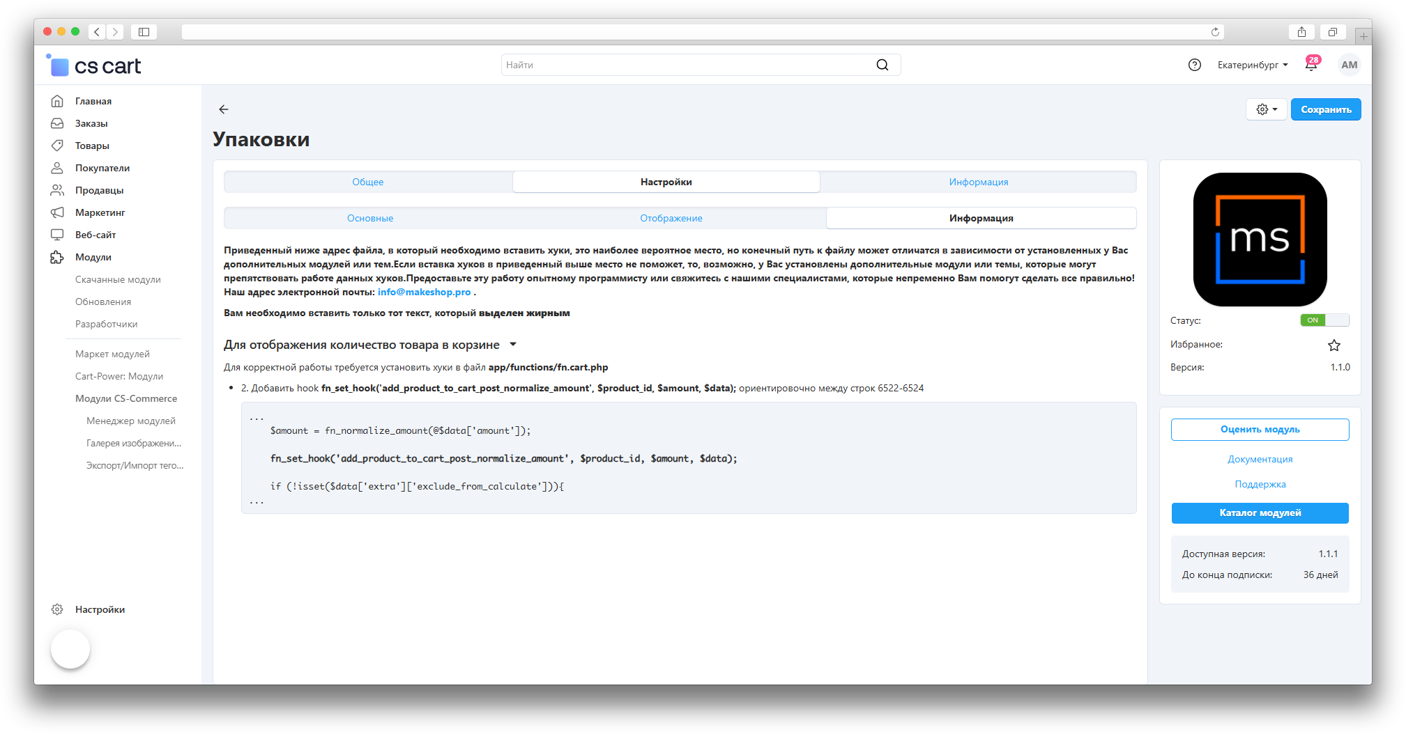 ВАЖНО: Данный модуль распространяется по подписке. Оформляя подписку вы получаете доступ ко всем модулям make shop. Обратите внимание: модули будут работать только при активной подписке!