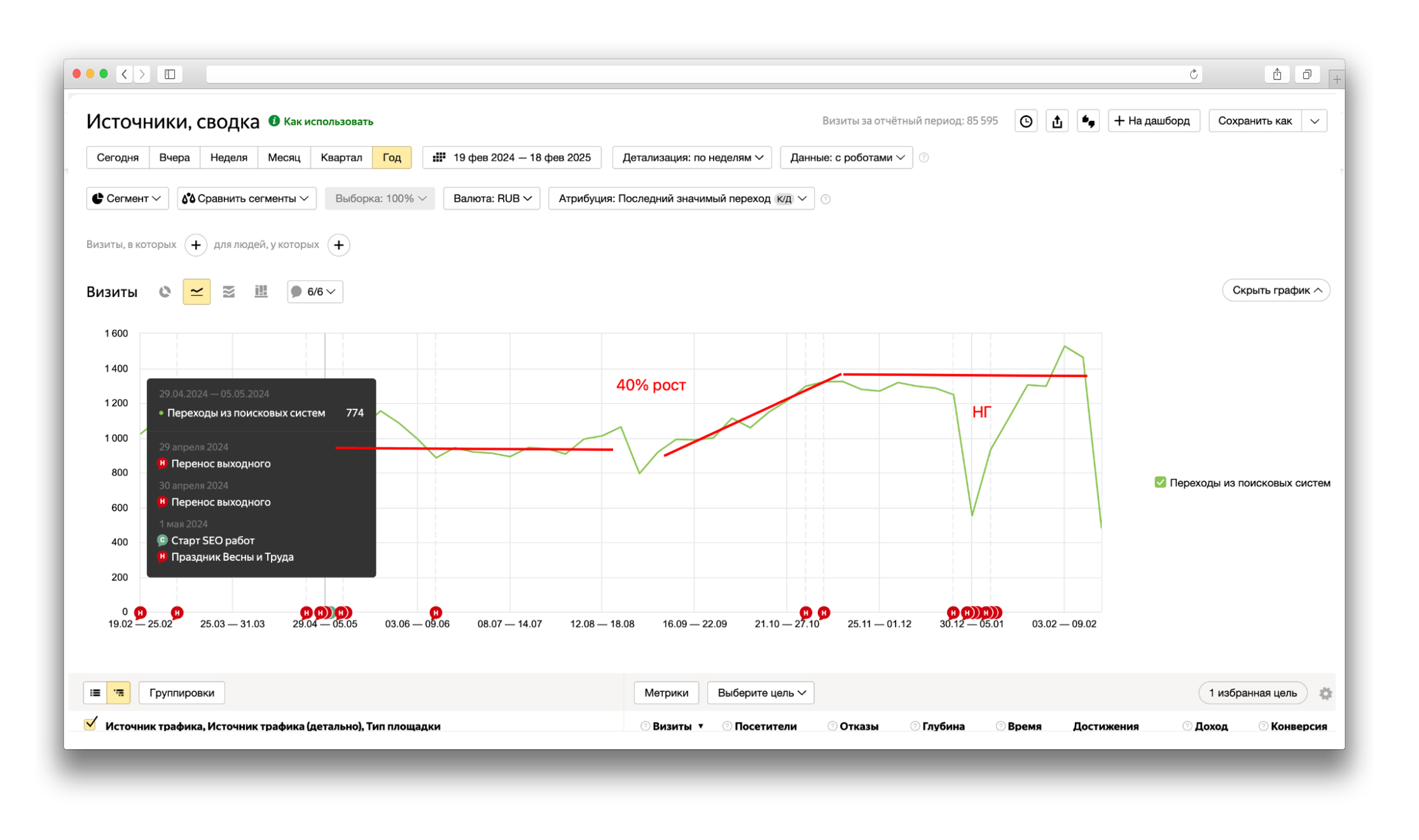 Наполнение категорий описанием увеличило посещаемость сайта на 40%