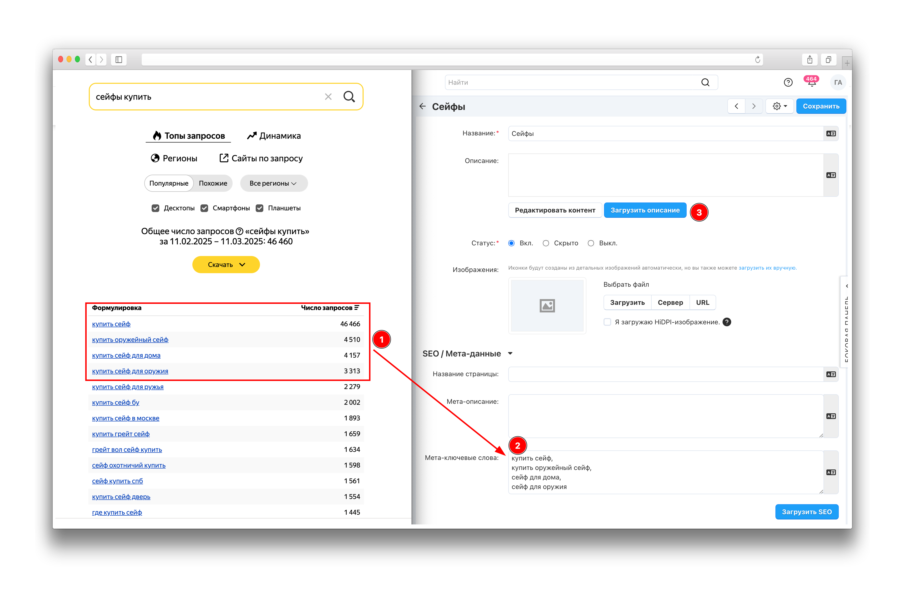 - Автоматическая генерация SEO-заголовков и мета-описаний товаров и категорий.