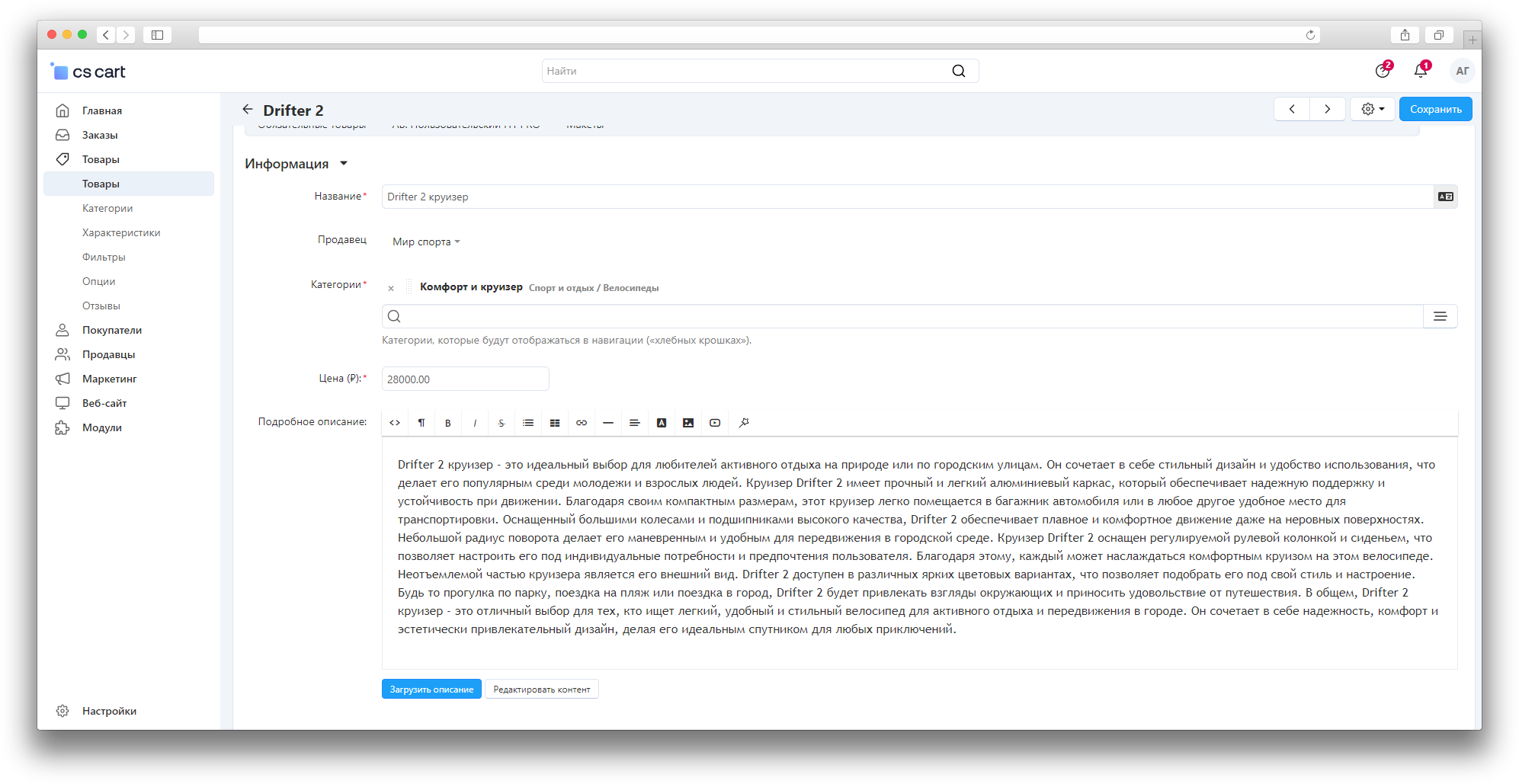 Это не просто модуль – это ваш интеллектуальный партнёр в мире электронной коммерции. Встречайте помощника, который применяет искусственный интеллект для создания уникальных и привлекательных описаний товаров и SEO описание категорий. С его поддержкой вы сможете автоматизировать подготовку контента и значительно повысить конверсию, благодаря качественным и SEO-оптимизированным текстам.
