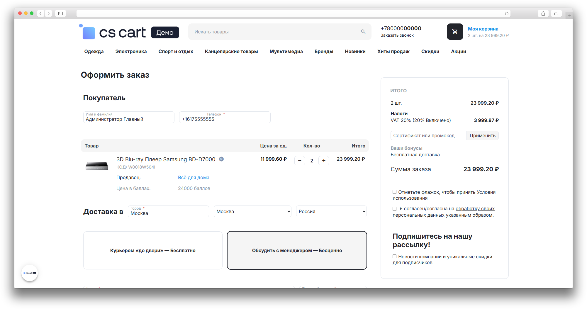 Модуль вносит ясность для покупателей при выборе способа доставки “Обсудить с менеджером”, который не подразумевает стоимость доставки и выводится с надписью “Бесплатно”.