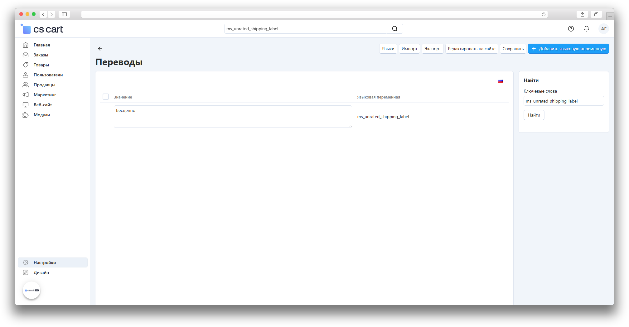 После установки в настройках модуля необходимо указать, для каких способов доставки применять языковую переменную и ее имя.