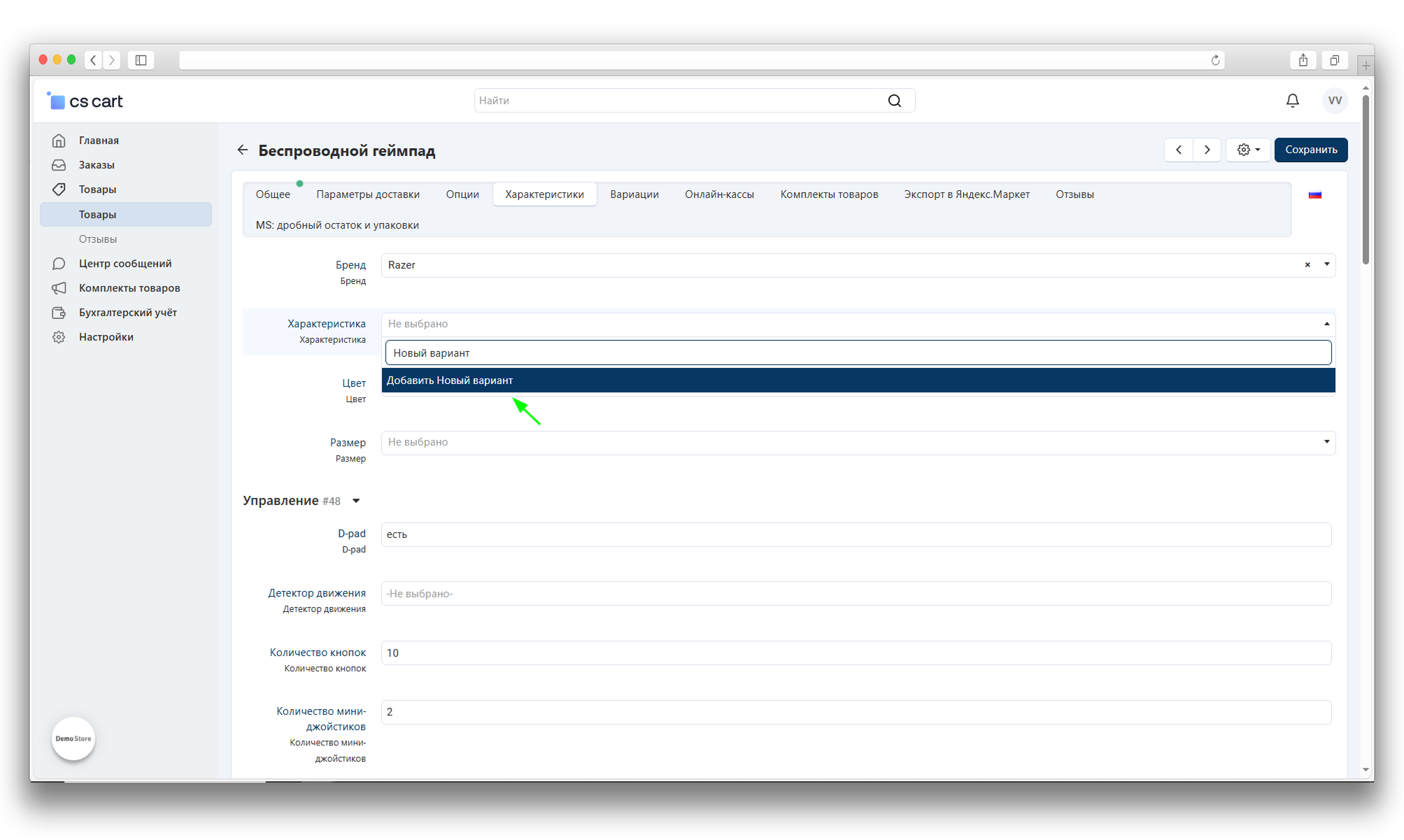 После выполнения данных настроек продавцы смогут создавать новые значения для выбранных характеристик.