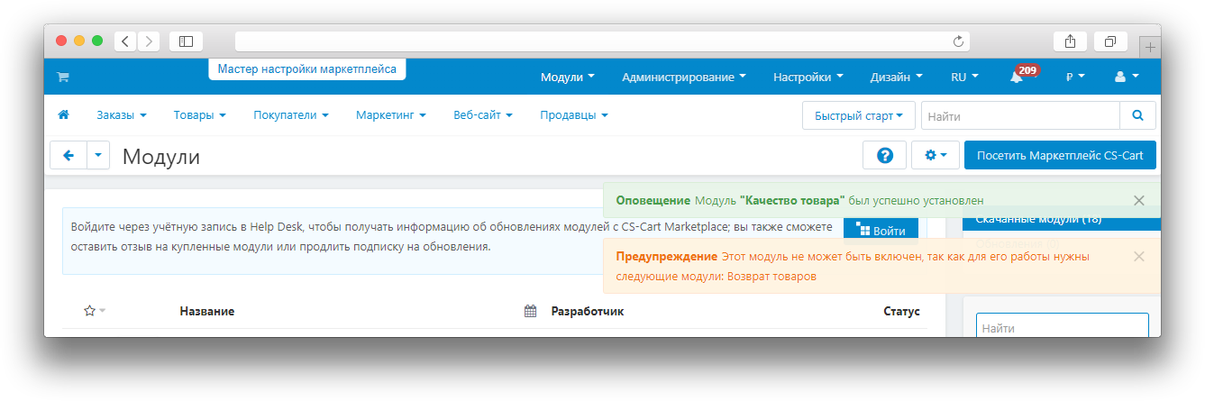Далее в личном кабинете в разделе загрузки вы сможете скачать нужный вам модуль и менеджер модулей для удобного управления модулями и оформления подписки.