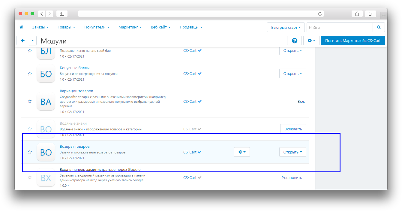Если URL сайта неправильный и вам нужно обновить его: переходите в пункт меню “Мои модули”