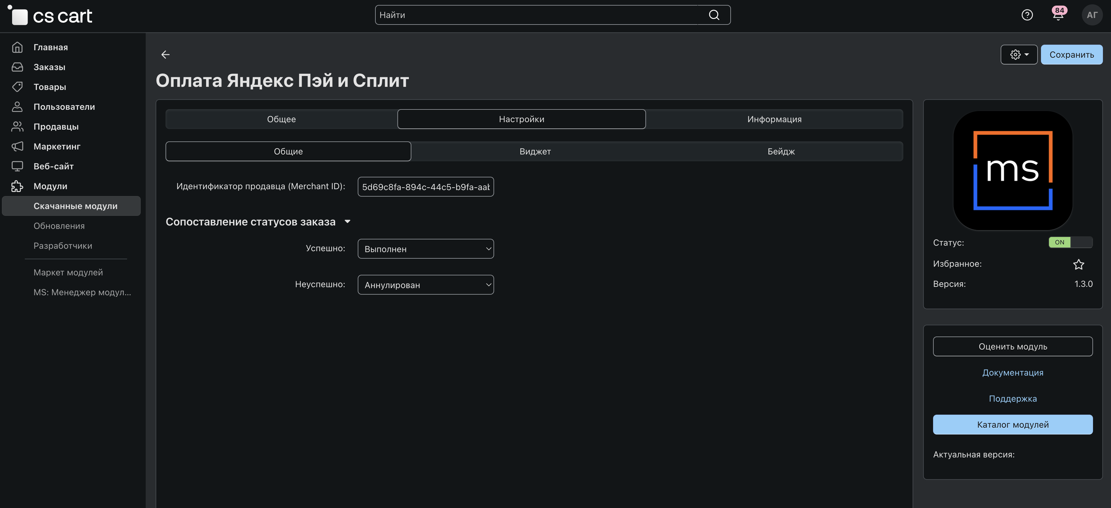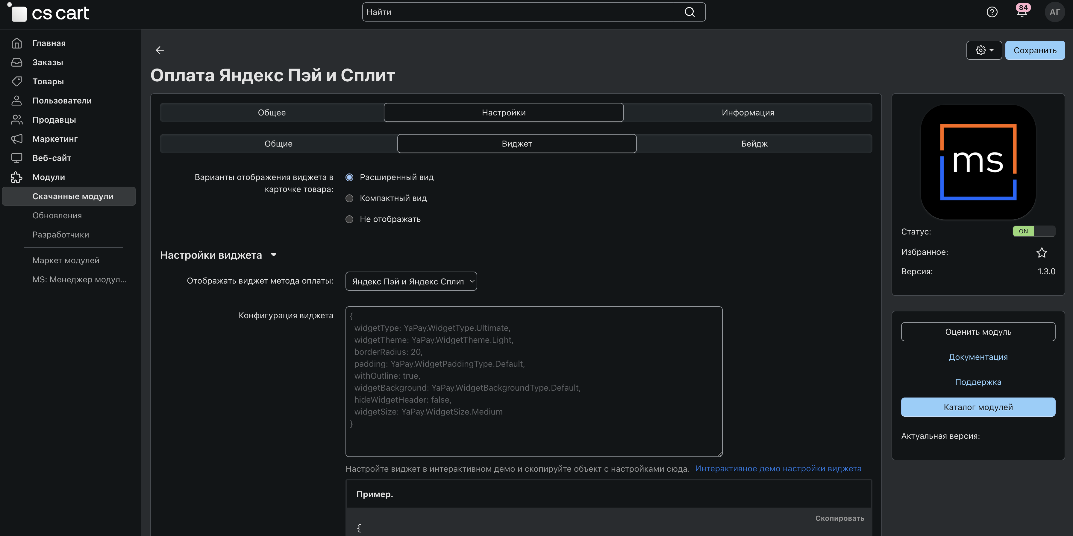 Модуль «Яндекс Пэй и Яндекс Сплит» для CS-Cart